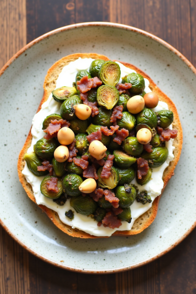 Heap the caramelized Brussels sprouts onto thick slices of toasted rustic bread. Top with generous pieces of creamy burrata cheese and sprinkle over shards of crisp bacon. For extra brightness, finish with lemon zest or fresh herbs. Each layer brings new dimension to the flavor and texture profile of this unforgettable toast.