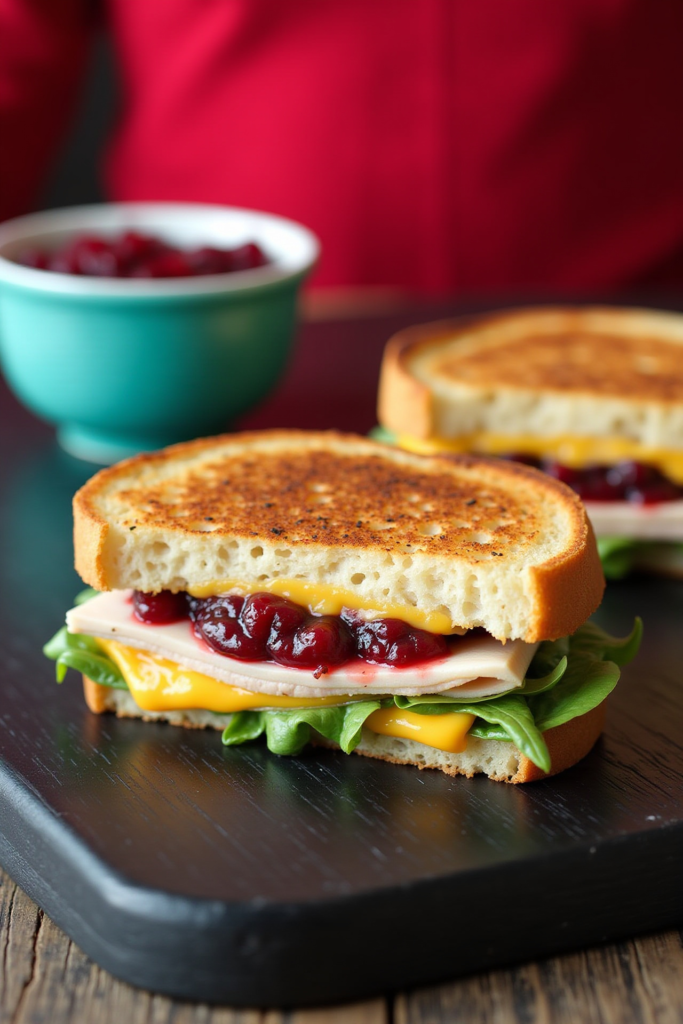 - Layer turkey, cheese, and greens on one slice of French toast. Add mustard or cranberry sauce if desired. Top with the second French toast slice.
