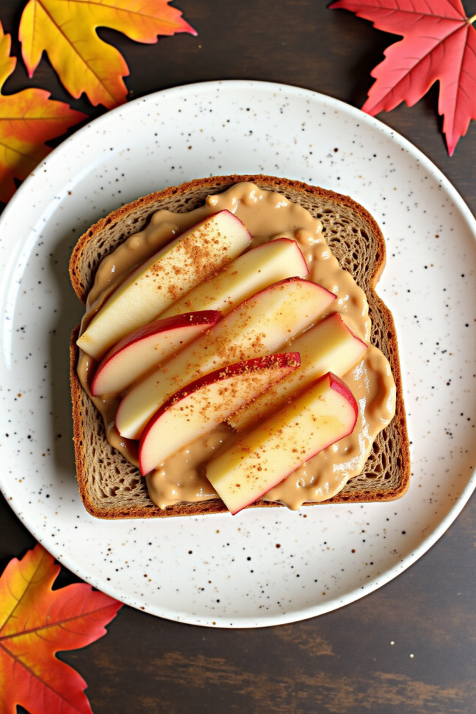 1. **Apple, Cinnamon & Almond Butter Toast**: Crisp apple slices, creamy almond butter, a dash of cinnamon, and a drizzle of honey on hearty whole-grain bread.